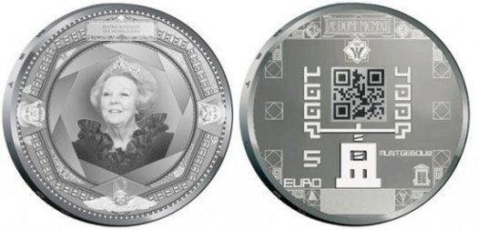 在已經(jīng)公開(kāi)的一枚樣品中,硬幣正面是荷蘭女王的頭像,背面則是一個(gè)二維碼,經(jīng)過(guò)解碼后其指向的是荷蘭國(guó)家造幣廠的網(wǎng)站。目前還不清楚其它硬幣的二維碼中到底隱藏了什么內(nèi)容,但可能會(huì)是一場(chǎng)競(jìng)賽、一個(gè)介紹歷史的網(wǎng)站或一個(gè)介紹荷蘭皇家造幣廠的視頻。造幣廠方面目前還在賣關(guān)子,反復(fù)強(qiáng)調(diào)在正式發(fā)行以后,購(gòu)買者將意外地看到令人驚奇的場(chǎng)景。